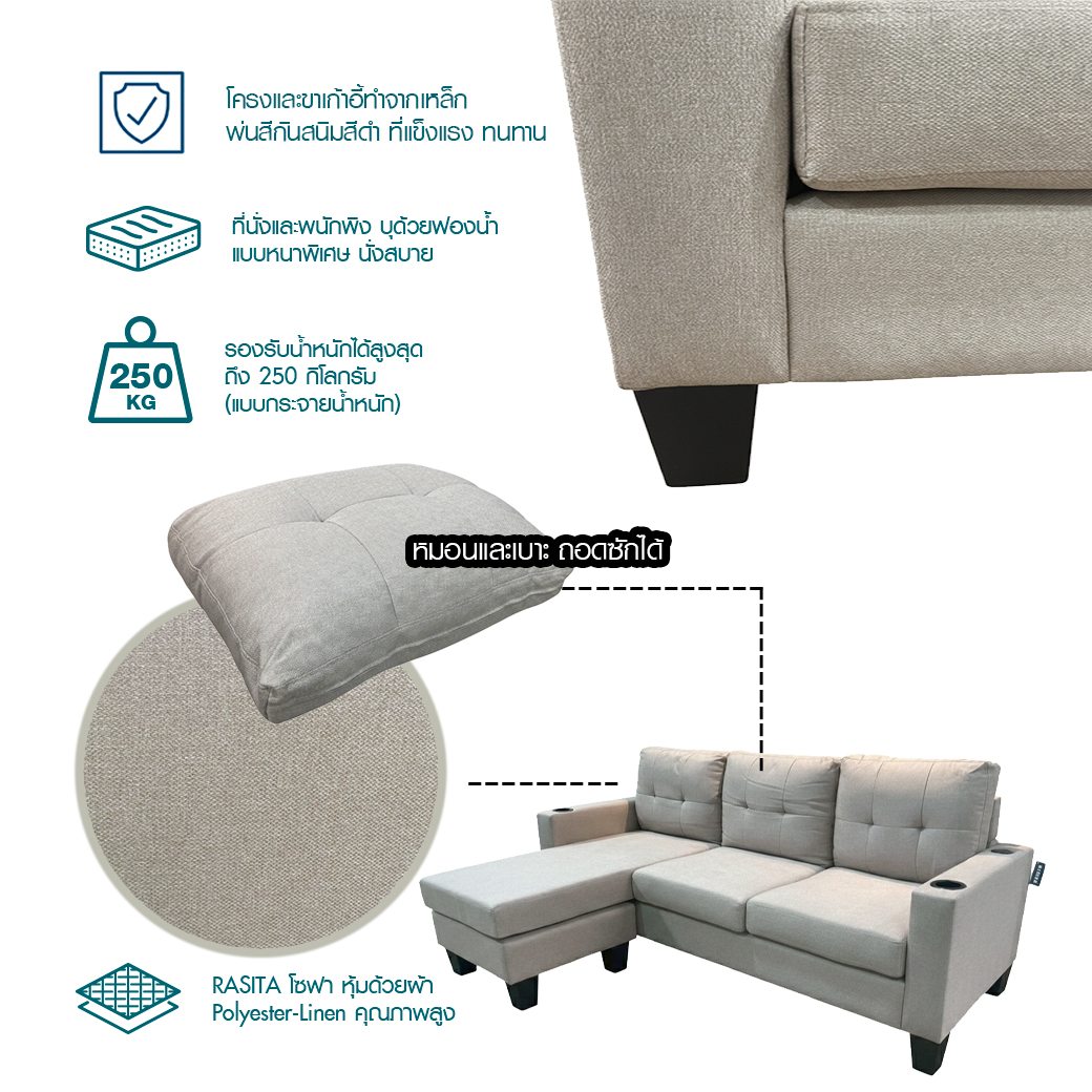 • รุ่น: RASITA โซฟา L Shape รุ่น Timmy สี Beige